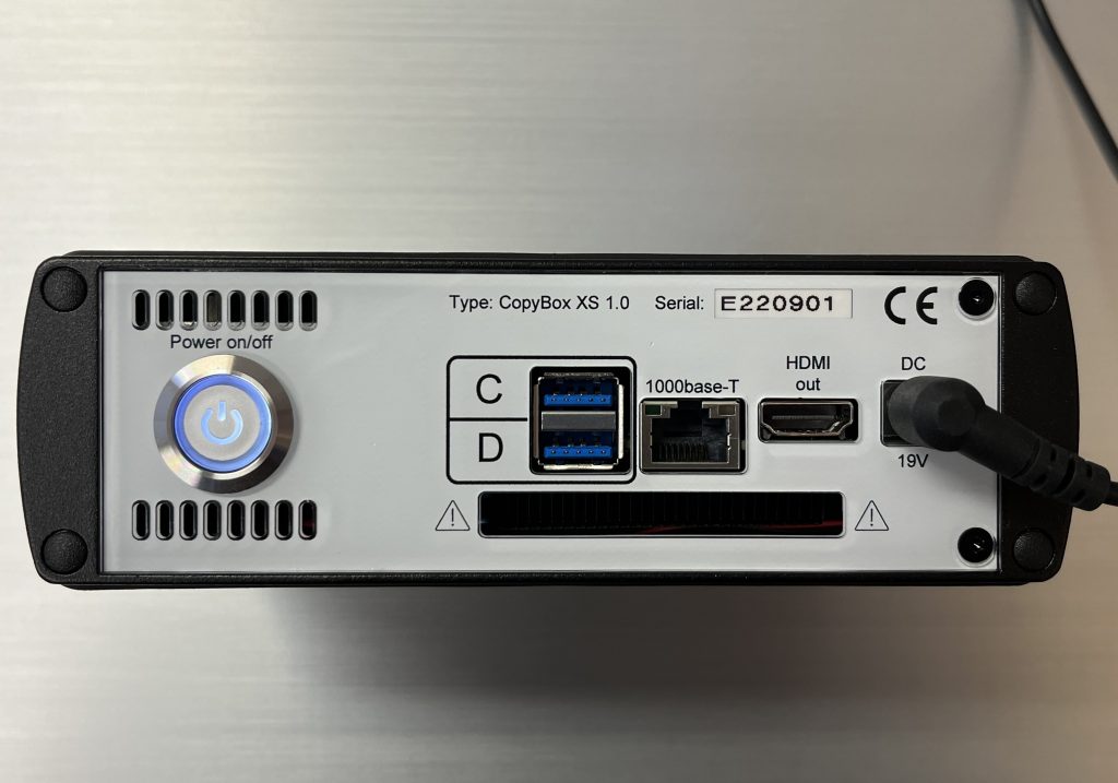 Gezeichnet durch das universale Konzept der CopyBox XS erfolgt der Anschluss der Quell- und Ziel-Datenträger über die USB-Anschlüsse A-D.