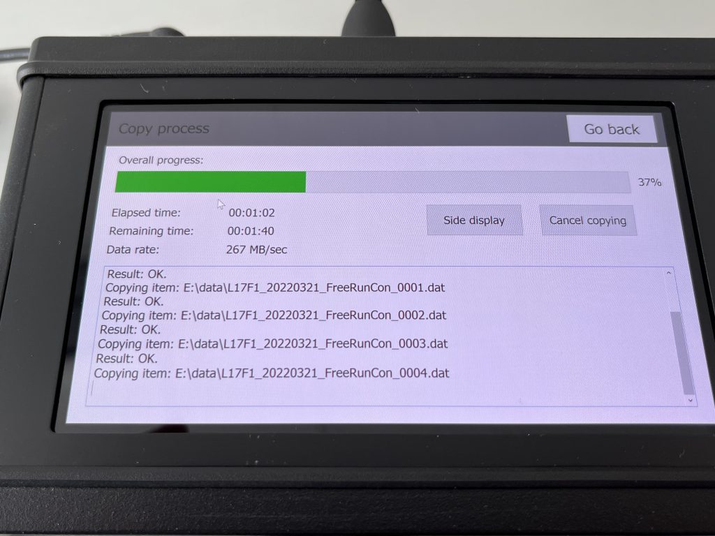 Die aus den Fahrversuchen entstehenden Datenmengen können bis in den Terrabyte-Bereich reichen, so dass die Kopiervorgänge viele Stunden in Anspruch nehmen können.