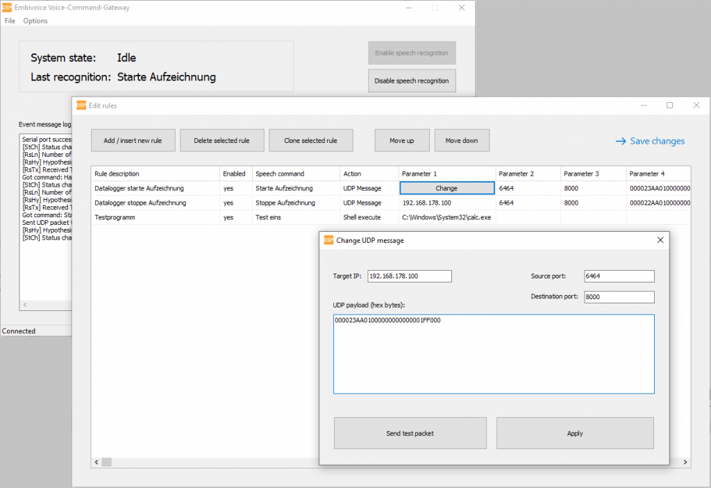 Zum Lieferumfang gehört das DSP Engineering „Voice-Command-Gateway“-Tool für Windows 10/11. Diese Software stellt die Verbindung zwischen der Sprachsteuerung und eigenen Programmen und Skripten her, die zum Beispiel auf einem CAR-PC ausgeführt werden. Die Reaktionen auf Sprachbefehle können hier über eine Matrix konfiguriert werden und die Anwendung läuft fortan minimiert im Hintergrund (Tray-icon in der Taskleiste) mit jedem Systemstart.